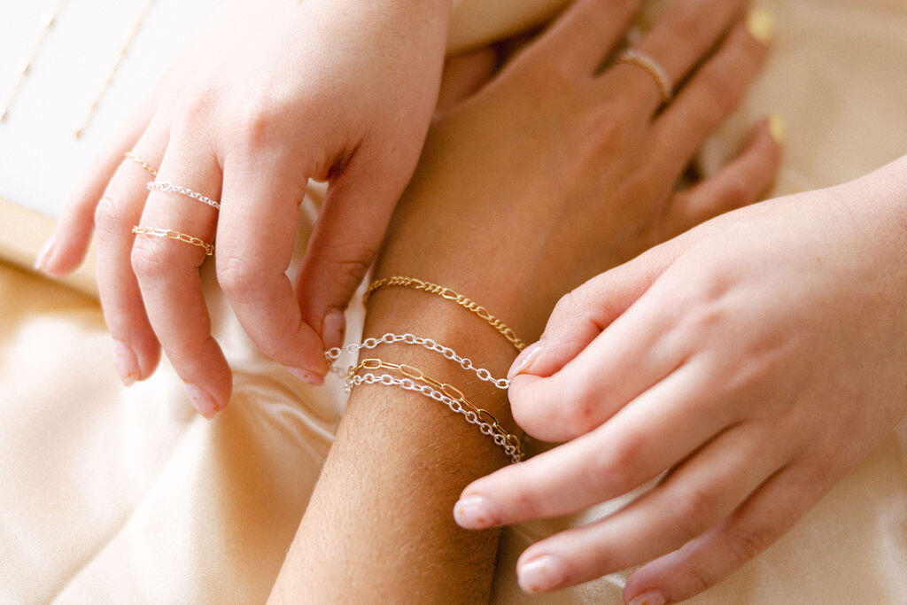 For 14K gold filled and sterling silver materials, we recommend gently washing your permanent jewelry periodically with mild soap and water, especially after swimming or sweating. Sterling silver in particular may require more regular polishing with a polish cloth. With care, your jewelry will stand up to the wear and tear of everyday use, however we recommend avoiding exposing your jewelry to harsh chemicals and cleansers.