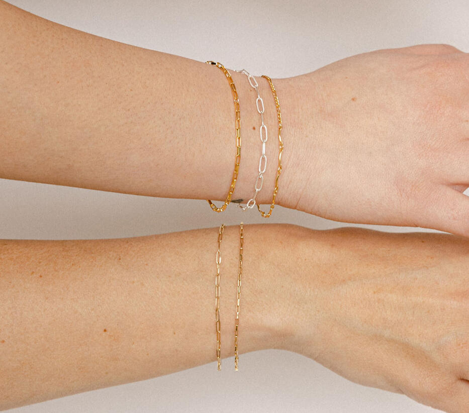 RiverLinks permanent jewelry is custom fitted lightweight chain permanently welded to your wrist, ankle or neck. Choose from our curated collection of 14K solid gold, 14K gold filled or sterling silver chains. Customize your piece with gemstones, connectors and charms. Let us help you express your true self and create memories that will last a lifetime.